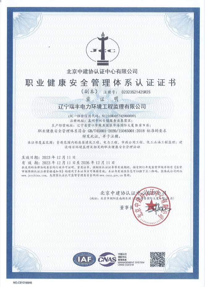職業(yè)健康安全管理體系認(rèn)證證書(shū)2